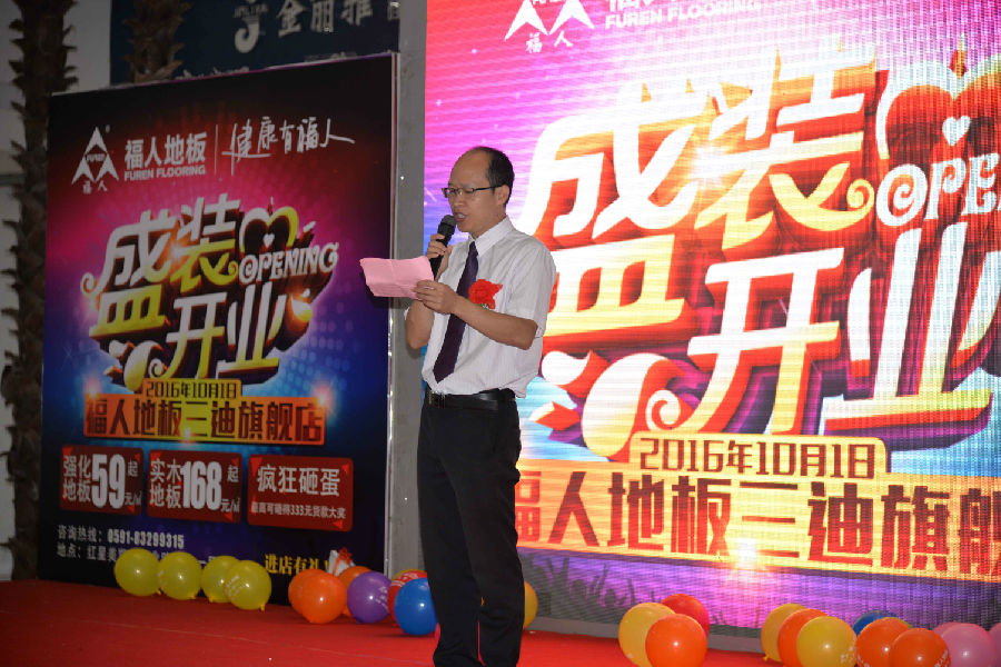 首先,由中林福人銷售總監(jiān)石開洪先生受中林福人董事長畢見勇先生的委托致辭。石總表示:福州三迪紅星美凱龍全球家居生活館,它是集家具、建材、家飾為一體的一站式時尚精品家居購物中心。福人地板三迪旗艦店是中林福人提升品牌、完善服務(wù)、展示新產(chǎn)品、弘揚(yáng)健康環(huán)保文化的重要舉措。此次福人地板強(qiáng)勢入駐福州紅星美凱龍商場,可謂是知名品牌與優(yōu)秀商場的強(qiáng)強(qiáng)聯(lián)合。福人地板一直秉承健康環(huán)保的理念,從消費者角度出發(fā),用產(chǎn)品直觀的表現(xiàn)為消費者營造個性、時尚、環(huán)保的家居消費氛圍,營造更好的消費體驗。這與紅星美凱龍的真正將家居消費從"舒心購物時代"提升到"感覺購物時代"不謀而合。我們相信,福人地板三迪旗艦店一定會取得良好的經(jīng)營業(yè)績,為福州廣大消費者帶去真正家的生活。