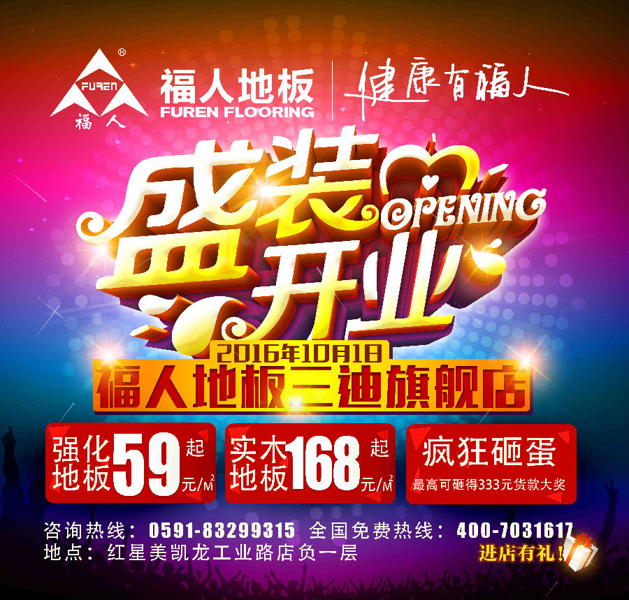 10月1日,讓我們一起期待福人地板三迪旗艦店開業(yè)特惠;