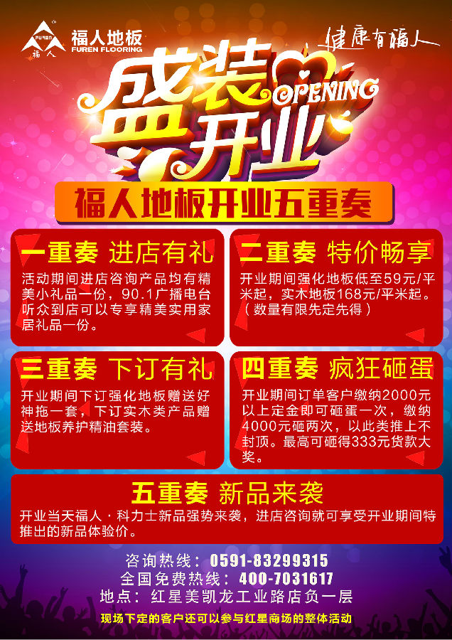 福人地板三迪旗艦店盛裝開業(yè)五重奏: