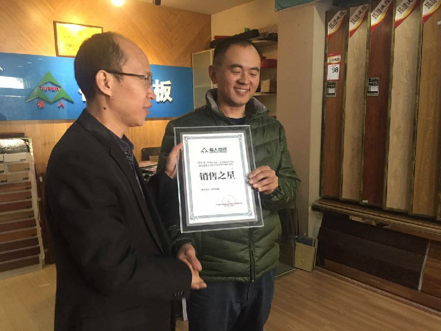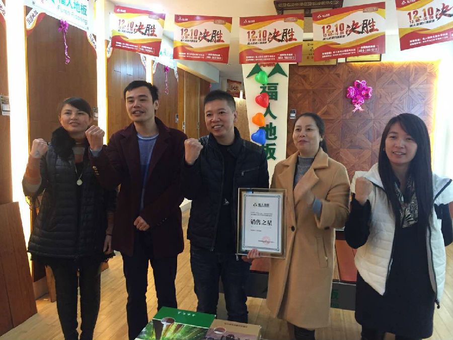 2016年11月27日,由中林福人與福建電視臺經(jīng)濟頻道《完全家裝》共同攜手的福人地板“最美專賣店”暨銷售之星評選來到中國綠色之都---三明,福人地板銷售總監(jiān)石開洪先生、福建大區(qū)經(jīng)理洪鼎忠先生、市場部梅蔚軍先生、三明區(qū)域經(jīng)理陳鏵先生參與此次活動。