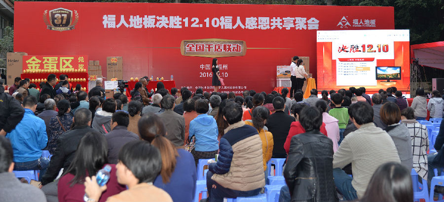 2016年12月10日,福人地板"決勝1210"感恩共享聚惠團購活動完美落幕!在這特殊的日子里,福人地板為家裝用戶們獻上一場地板的饕餮盛宴,高品質(zhì)多款式的地板品類,比平常市面更加優(yōu)惠的價格,貼心周到的服務(wù),大大提高了消費者的采購熱情。福建電視臺經(jīng)濟頻道《完全家裝》欄目、福建電視臺《與法同行》對本次活動全程報道。