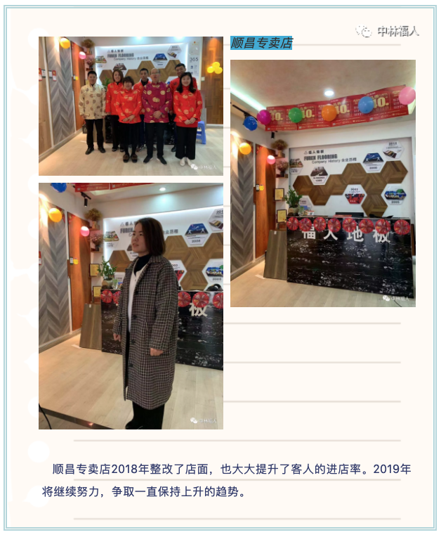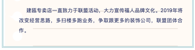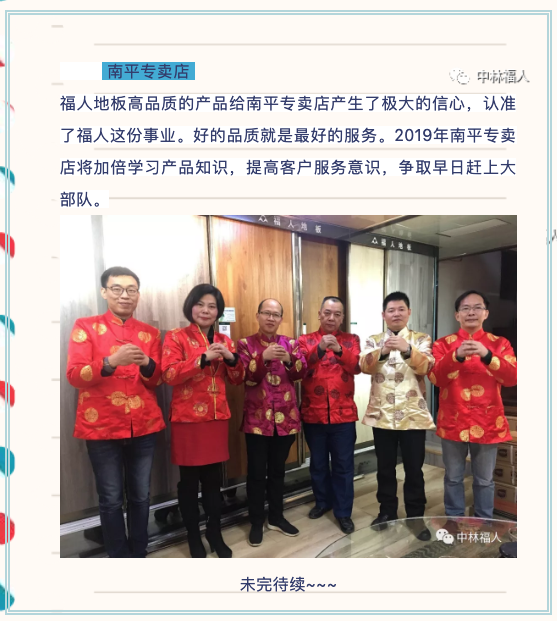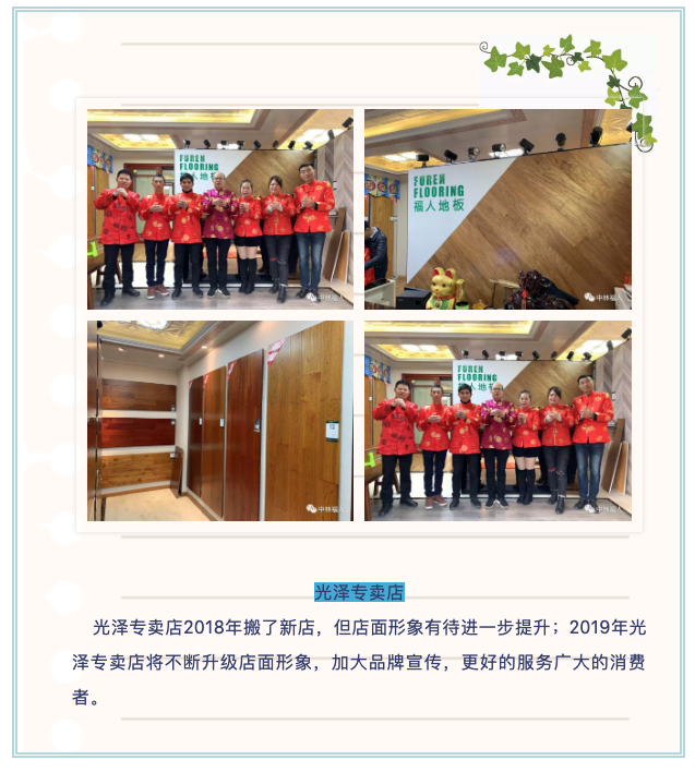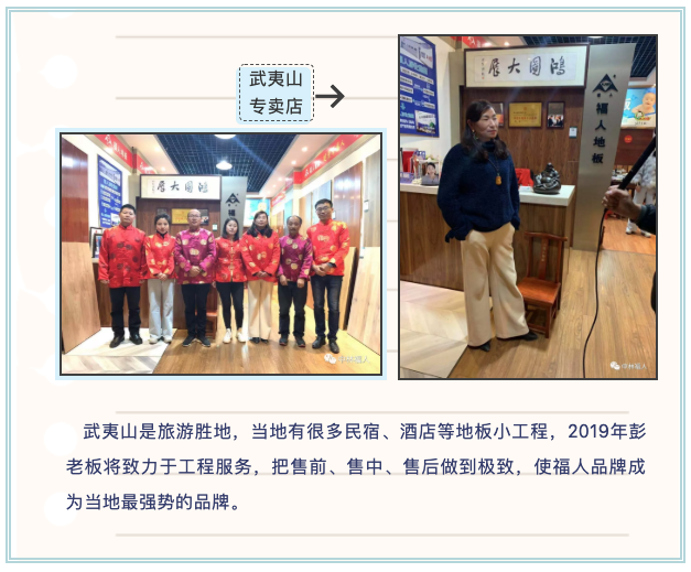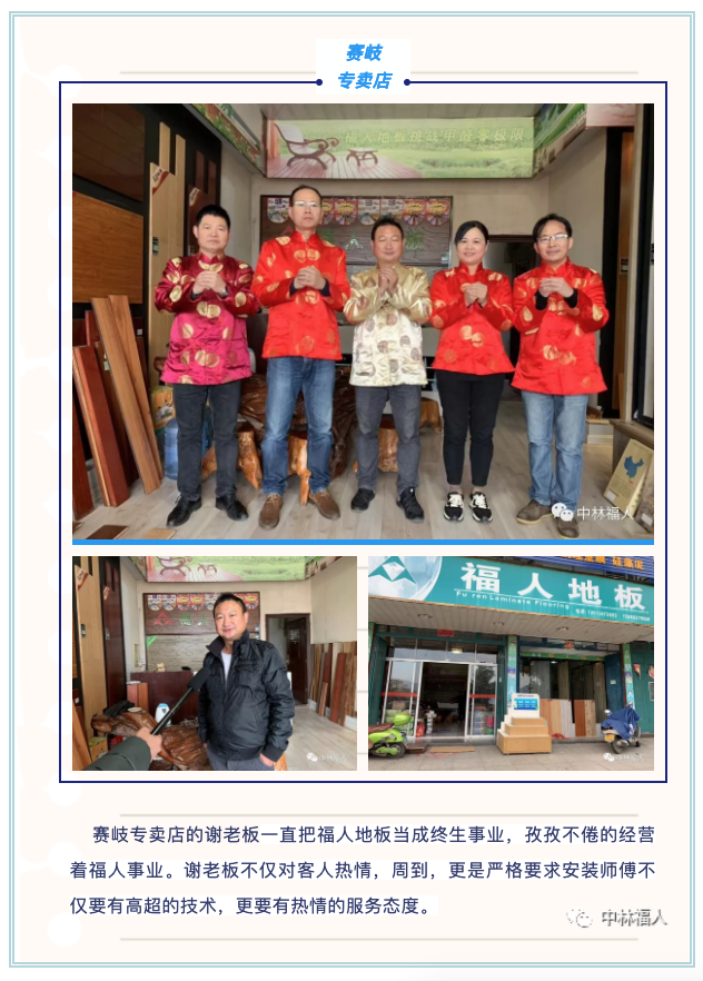 此次八閩行的主題——不忘初心,砥礪前行,福人地板百千萬工程新紀元。此次活動是公司組織走訪福建各區(qū)域,與優(yōu)秀經銷商進行溝通交流行業(yè)發(fā)展、目前存在的問題及解決方案,并統(tǒng)一思想,努力做好品牌價值鏈的傳遞,廠商結合共同服務消費者,提高消費者的消費體驗,使福人地板成為以消費者為中心的踐行者。各專賣店詳情如下: