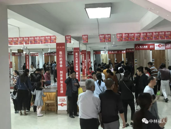 活動當天,工廠布置一新,消費者乘坐大巴從各地匯聚至福建福州-福人地板總部。