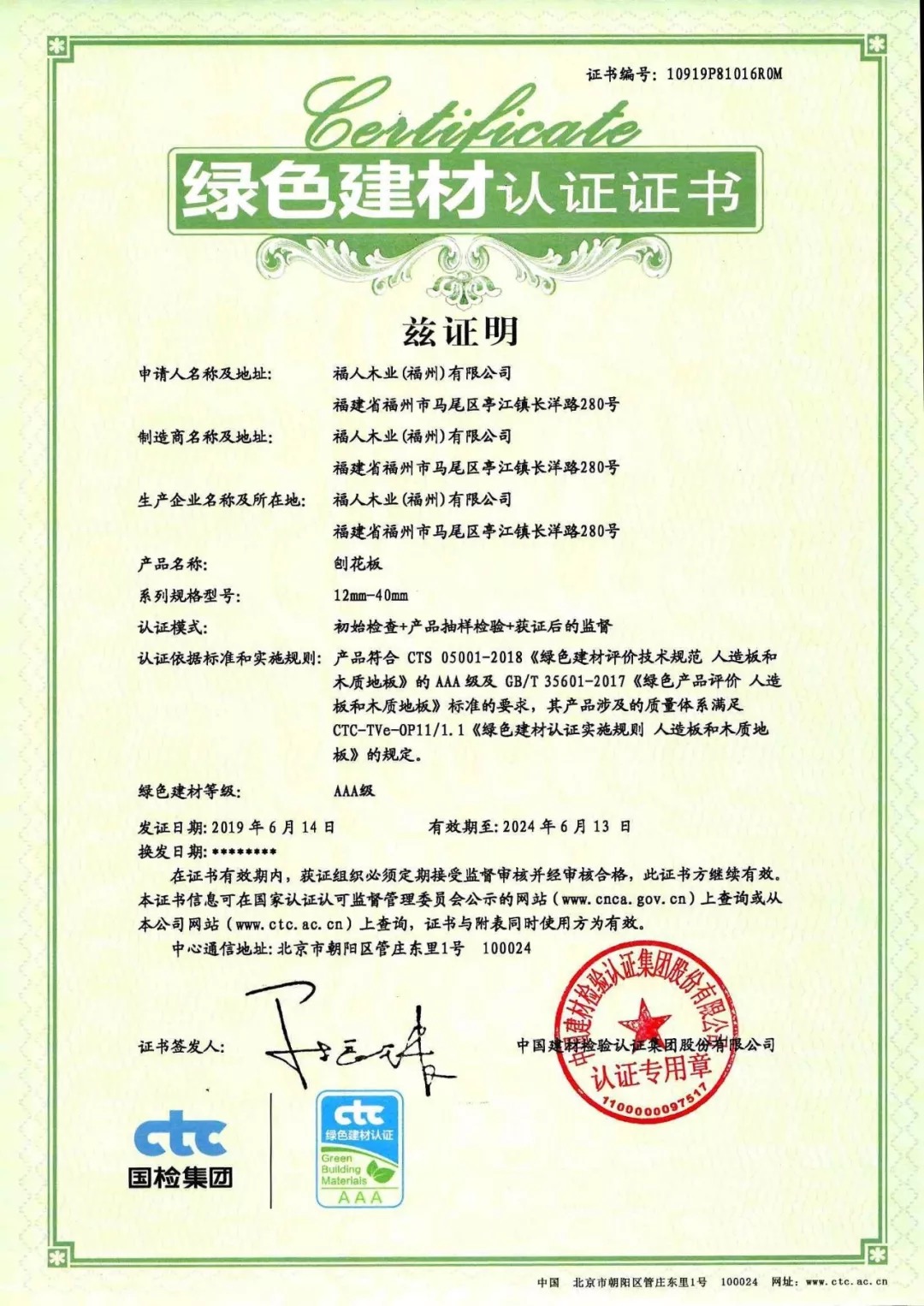 近日,國檢集團(tuán)CTC向福人木業(yè)(福州)有限公司頒發(fā)了人造板行業(yè)首張綠色建材AAA級認(rèn)證證書。CTC通過對該公司刨花板產(chǎn)品實施抽樣檢驗,并就其涉及的綠色指標(biāo)符合性、工廠保證能力及產(chǎn)品一致性等方面進(jìn)行系統(tǒng)的現(xiàn)場核查,證明了其刨花板產(chǎn)品能夠滿足GB/T 35601-2017《綠色產(chǎn)品評價 人造板和木質(zhì)地板》及綠色建材認(rèn)證AAA級的要求,符合綠色建材“基于生命周期理念”,統(tǒng)籌兼顧“資源”、“能源”、“環(huán)境”、“品質(zhì)”多屬性要求的基本內(nèi)涵。