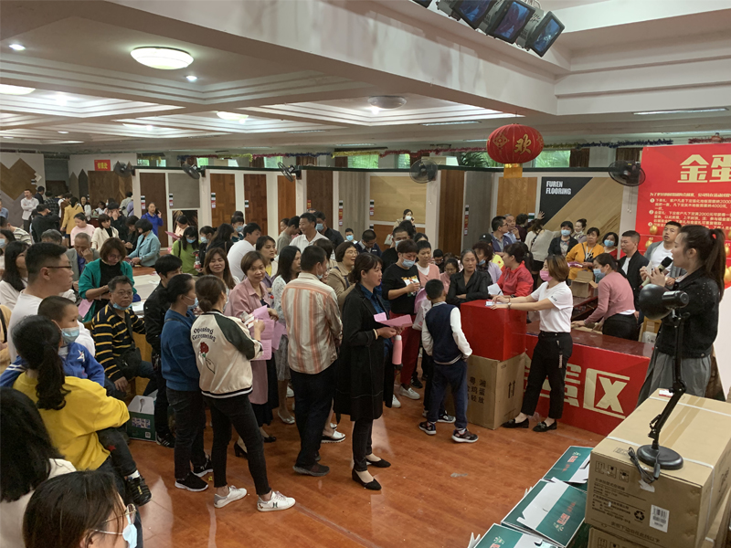 活動現(xiàn)場福人地板不僅為消費者準備了品質(zhì)過硬的產(chǎn)品,工廠直供價,更有超多福利:認購下單就有禮、金蛋砸不停、還有終極大抽獎,現(xiàn)場火爆非凡。短短兩個半小時的團購會吸引了數(shù)千人咨詢及下單。